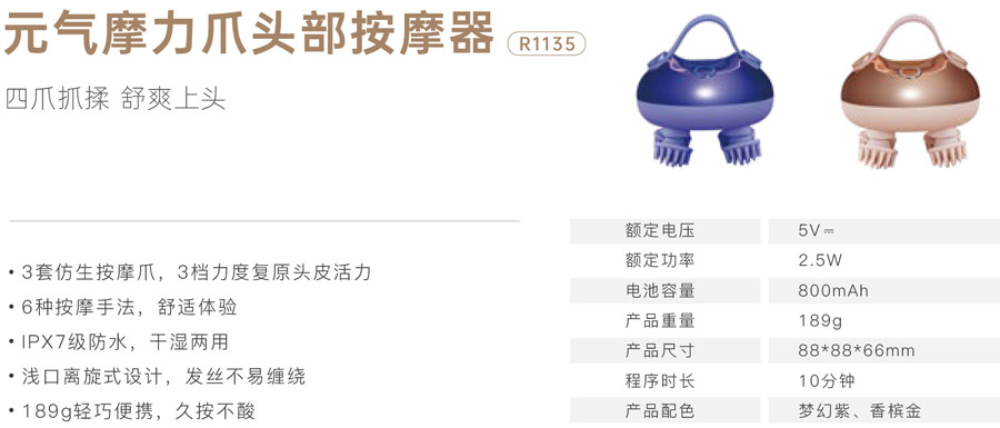 榮耀R1135 元?dú)饽αψ︻^部按摩器