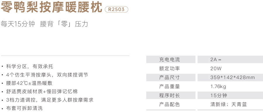 榮耀R2503 零鴨梨按摩暖腰枕